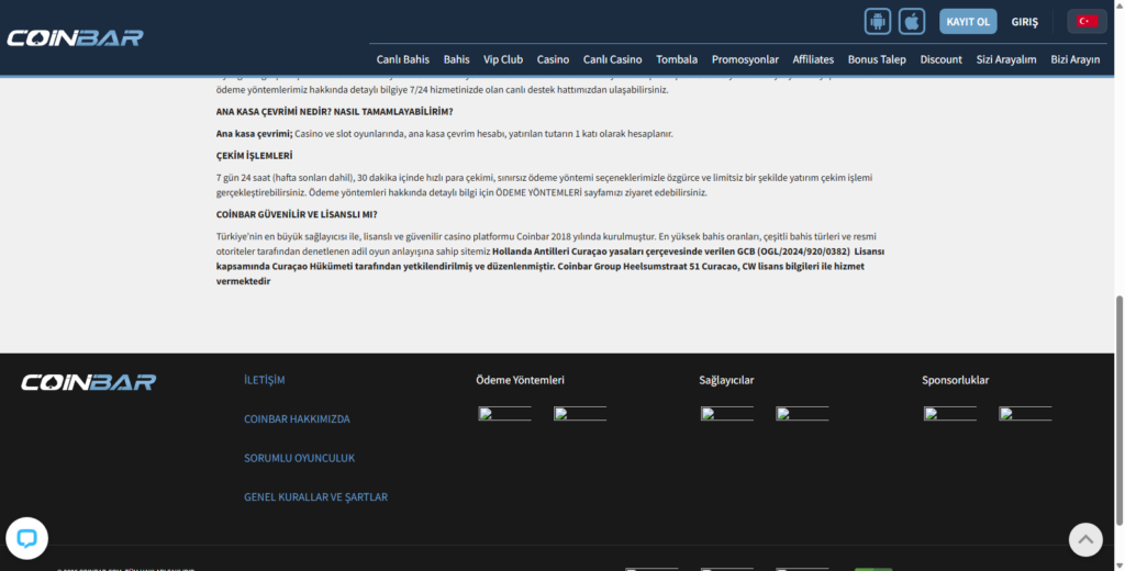 Güvenilir bir platformun en belirgin özelliklerinden biri, 7/24 canlı destek hizmeti sunmasıdır. Türkçe destek, hızlı yanıt süresi ve çözüm odaklı yaklaşım şart. Coinbar bu anlamda sektörde öne çıkıyor; anlık sohbet, e-posta ve bazen telefon desteğiyle sorunlarını dakikalar içinde çözebilirsin.